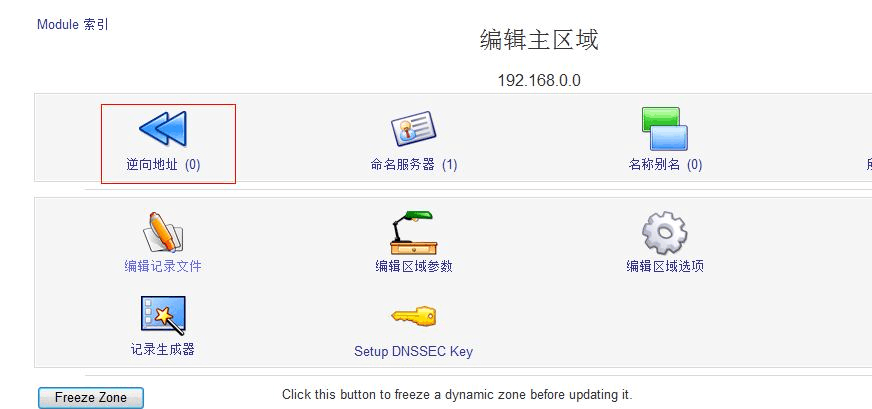 區(qū)域類型選擇”逆向”,域名/網(wǎng)絡(luò)填寫”192.168.0.0”,在視圖中創(chuàng)建選擇”view_192.168.0.0”,同樣填入E-mail ,然后點(diǎn)擊創(chuàng)建,創(chuàng)建成功后會(huì)自動(dòng)跳轉(zhuǎn)到編輯主區(qū)域的界面。 接下來,選擇”逆向地址”,進(jìn)行逆向地址的創(chuàng)建,如圖11/圖12。