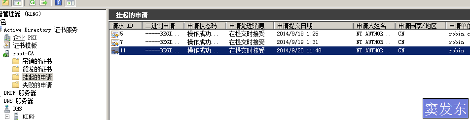 4、在CA 服務(wù)器上頒發(fā)證書,在web 服務(wù)器上將證書下載下來