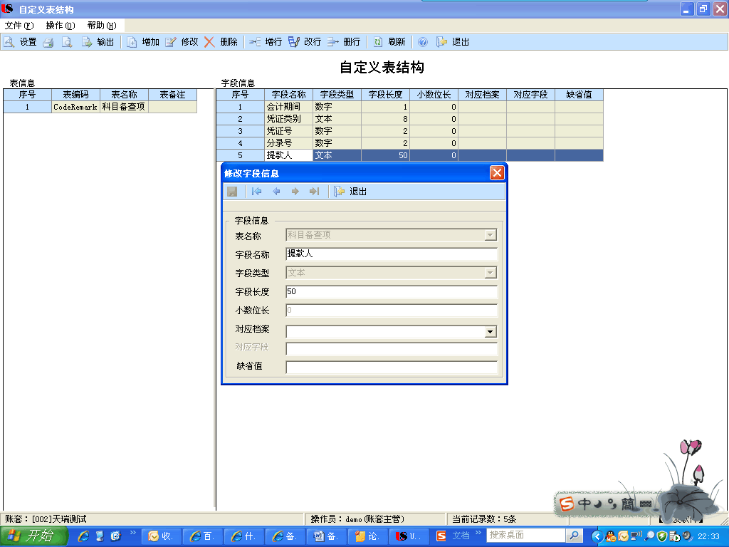 二、 打開表結(jié)構(gòu)在字段信息處點(diǎn)“增行”
