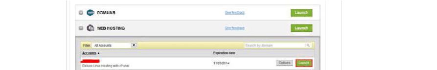 1. 登錄到GoDaddy 賬戶,點(diǎn)擊“WEBHOSTING”選擇Linux 主機(jī),然后點(diǎn)擊后面的“Launch”綠色按鈕。