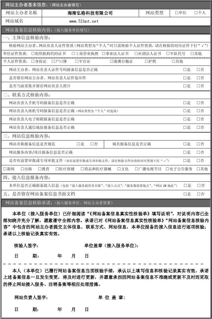 網(wǎng)站備案信息真實(shí)性核驗(yàn)單