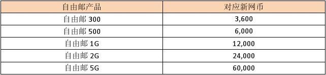 1、 自由郵產品規(guī)格仍為五款,對應新網幣數(shù)量及新網幣有效期不變,具體規(guī)格如下所示:
