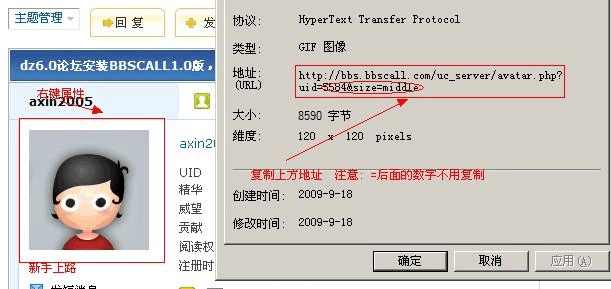 訪問論壇任意一個貼子 查看頭像 右鍵-屬性