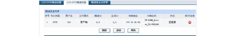 3. 客戶端和服務器端條目建立后,都選擇啟用,成功建立后在服務器端和客戶端的L2TP/PPTP隧道信息中將有條目: