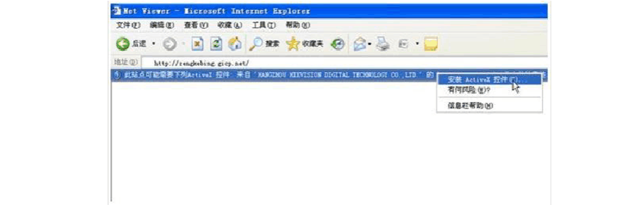 打開瀏覽器,在地址欄里面輸入動態(tài)域名zengkebing.gicp.net 敲回車鍵,會得到一個以下的提示,需要安裝一個來自“杭州??低晹?shù)字技術股份有限公司”的一個控件,這個是我們必須要安裝的,點擊提示按左鍵進行安裝。