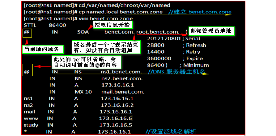 (1)建立正向解析數(shù)據(jù)庫文件benet.com.zone 文件。