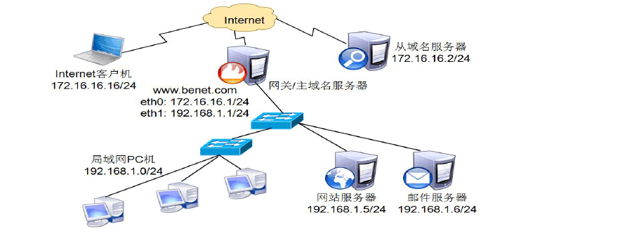 ◆ 郵件服務(wù)器mail.benet.com,ip 地址:173.16.16.1