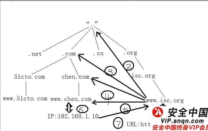 如果在chen.com 域中直接查詢www.chen.com ,查詢結(jié)果將直接輸出。如果在www.isc.org 服務(wù)器查找www.chen.com ,對(duì)于一個(gè)毫不相關(guān)的www.chen.com DNS服務(wù)名稱(chēng),首先將客服端請(qǐng)求發(fā)送到根域,再查到二級(jí)域.com, 最后查詢到管www.chen.com 的域名chen.com. ,在由chen.com 查找是否有注冊(cè)的www.chen.com ,最后將結(jié)果返回到www.isc.org 服務(wù)器再輸出客戶端。