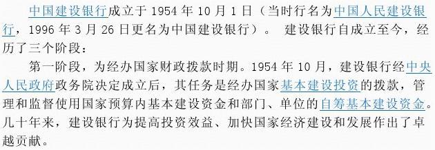 ,第二階段,為國家專業(yè)銀行時期。從20世紀80年代中期起,為適應經濟金融體制改革和經濟發(fā)展的要求,建設銀行先后開辦了現(xiàn)金出納、居民儲蓄、固定資產貸款、工商企業(yè)流動資金貸款、國際金融、住房貸款和各種委托代理業(yè)務。通過開辦各種面向社會大眾的商業(yè)銀行業(yè)務,豐富了銀行職能,為向現(xiàn)代商業(yè)銀行轉軌打下了堅實的基礎。