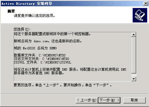 在這里要指定AD 數(shù)據(jù)庫和日志的存放位置,如果不是C 盤的空間有問題的話,建議采用默認。