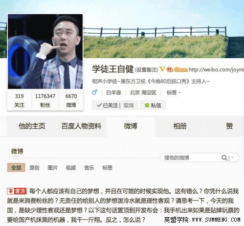 不過,這樣的地位也可能馬上就要被取代了。北京相聲第二班班主,東方衛(wèi)視《今晚80后脫口秀》主持人,相聲演員王自健今日正式通過微博宣布進軍手機界!