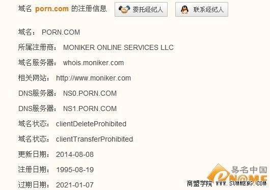 商盟學(xué)院播報:百度網(wǎng)盤涉黃部分賬號被關(guān) 微博曝當(dāng)當(dāng)網(wǎng)威脅商家 ... ... 被盜新消息:已轉(zhuǎn)入Moniker 平臺域名Porn.com 是繼sex.com 之后,第二個被盜的重量級的色情域名,日前
