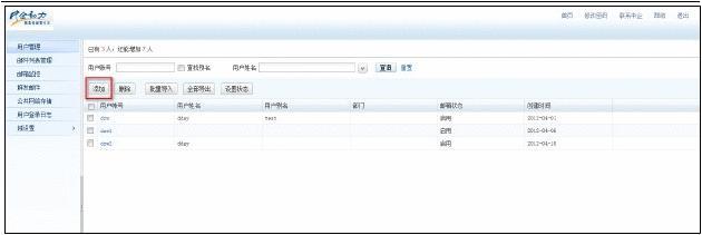 打開(kāi)用戶管理頁(yè)面。請(qǐng)您單擊右側(cè)的“添加”按鈕(如圖2.1.1),進(jìn)入添加用戶頁(yè)面。