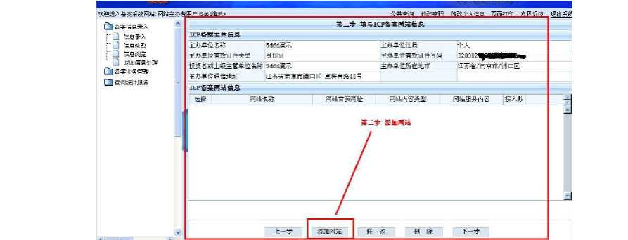 ,第一步 信息錄入 此步驟信息由自己按照真是情況填寫,如果是自己備案,那么主辦單位可以為自己的姓名。
