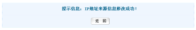 該界面為IP 報備用戶提供IP 來源修改修改是否成功的提示界面,點擊返回后返回第二步界面。