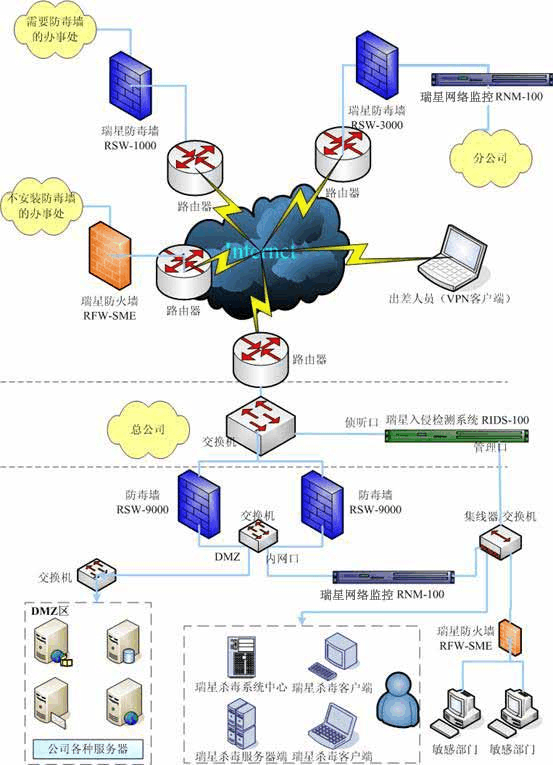 包括企業(yè)級防火墻和企業(yè)級的反病毒軟件,防范病毒和黑客的攻擊。
