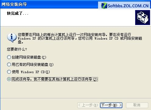 再下一步設(shè)置計(jì)算機(jī)名和計(jì)算機(jī)描述隨便填,但不要和主機(jī)一樣,然后是工作組,一定要填和主機(jī)一樣的,如默認(rèn)的MSHOME 。以后一直默認(rèn),直到最后一項(xiàng)" 完成改向?qū)АN也恍枰谄渌?jì)算機(jī)運(yùn)行該向?qū)? 。