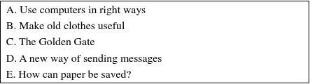 例:Choose the best topic from A to E according to the meaning of the passage.