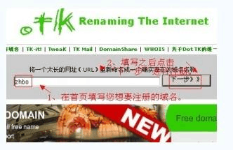 如注冊(cè)“zhbo.tk ”域名,僅僅填寫“zhbo ”即可。然后點(diǎn)擊“下一步”繼續(xù)注冊(cè)。