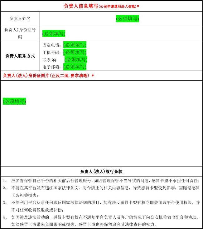 感冒卡盟網站系統(tǒng)架設表格填寫格式