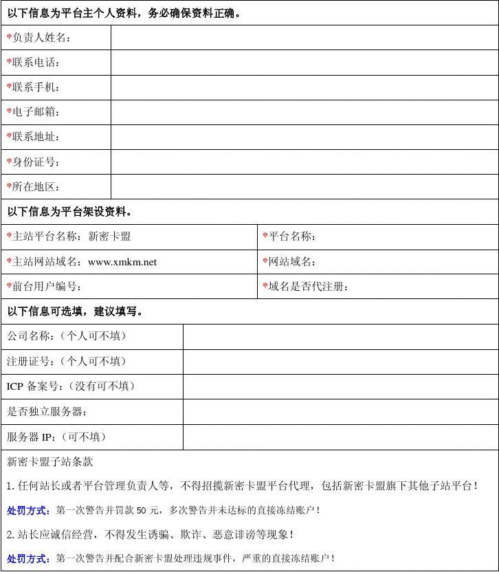 新密卡盟搭建卡盟網(wǎng)站申請表