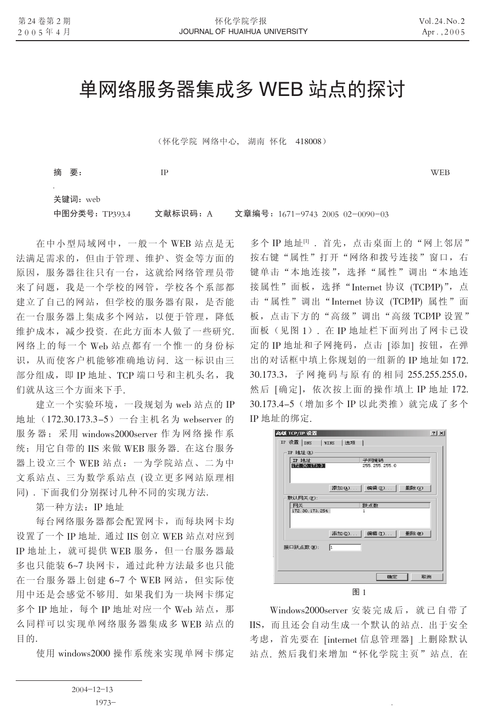 單網(wǎng)絡服務器集成多WEB站點的探討