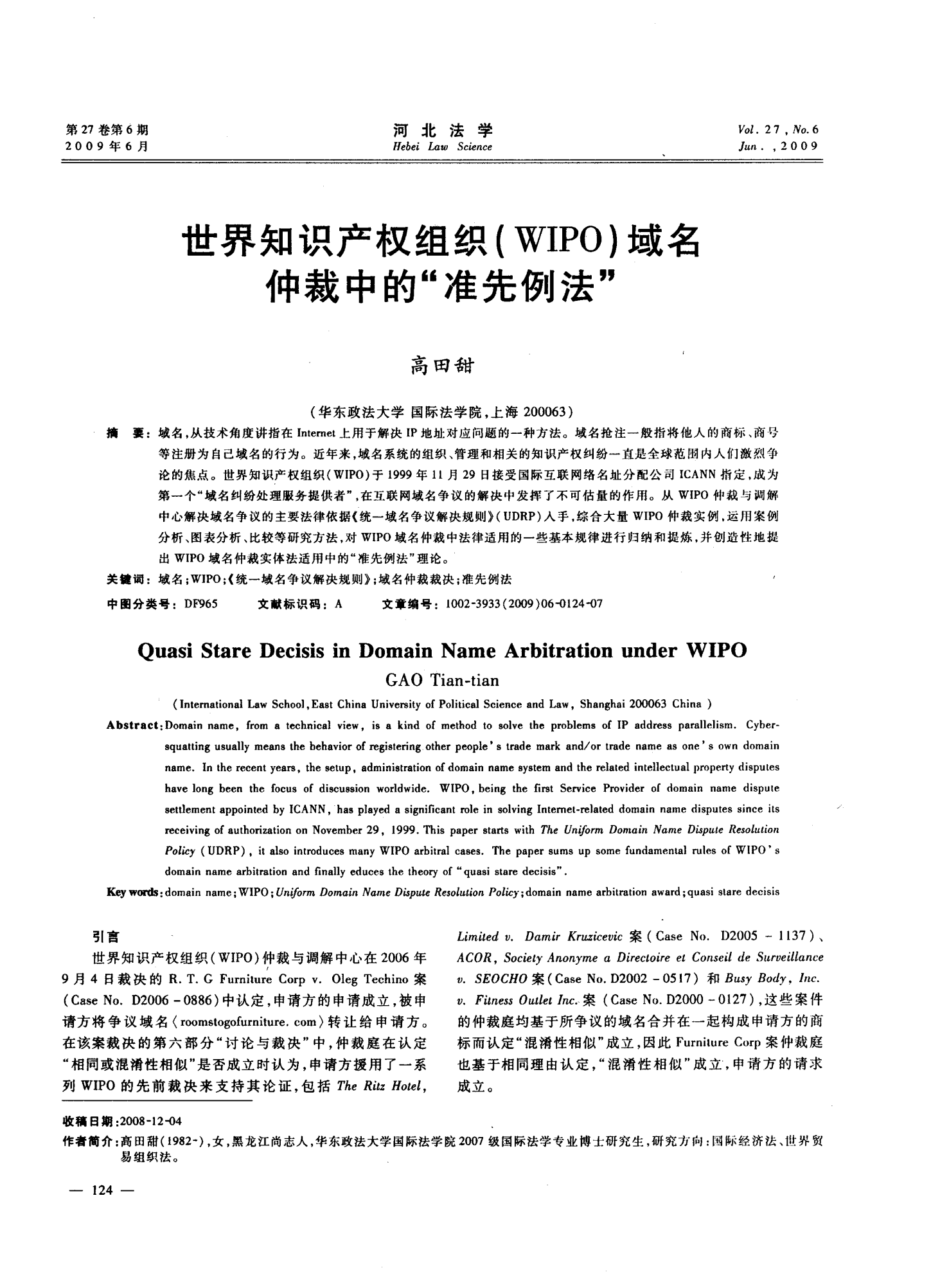 世界知識(shí)產(chǎn)權(quán)組織(WIPO)域名仲裁中的“準(zhǔn)先例法”