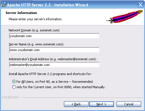 Administrator ’s Email Address設(shè)置站點管理員郵件地址,Apache 文檔說明當站點出錯時的頁面底部會出現(xiàn)該地址。