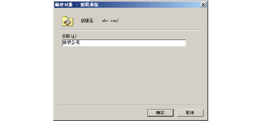 在“新建對(duì)象 - 組織單位”對(duì)話框中輸入組織單位的名稱,例如:XXX 公司