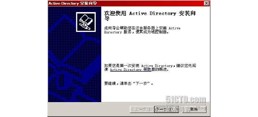 3. 如下圖所示,出現(xiàn)Active Directory 安裝向?qū)?,?chuàng)建域控制器其實就是在服務(wù)器上安裝一