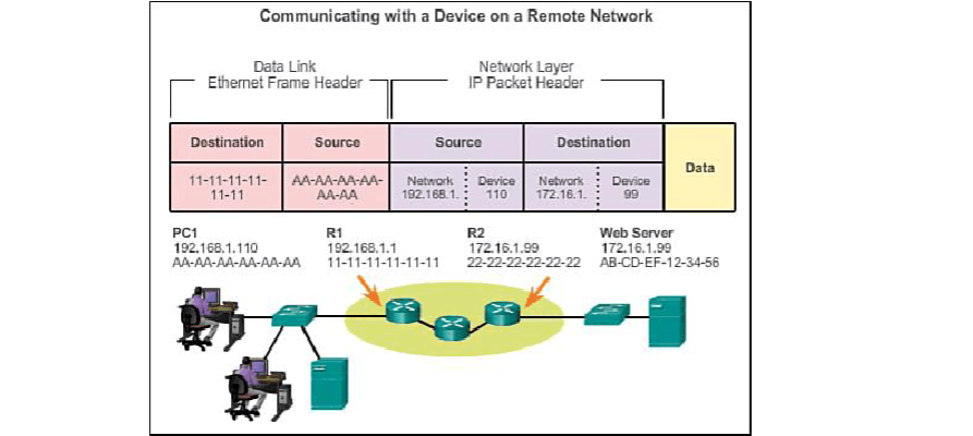 訪問本地網(wǎng)絡(luò)資源需要兩種類型的地址:網(wǎng)絡(luò)層地址和數(shù)據(jù)鏈路層地址。網(wǎng)絡(luò)層和數(shù)據(jù)鏈路層負責(zé)將數(shù)據(jù)從發(fā)送設(shè)備傳輸至接收設(shè)備。兩層協(xié)議都有源和目的地址,但兩種地址的目的不同。
