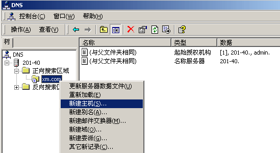 2、 在剛才配置的正向搜索區(qū)域中,建立主機www.xm.com 、bbs.abc.com 和