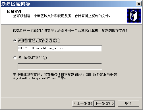 4、創(chuàng)建一個反向搜索區(qū)域。網(wǎng)絡(luò)ID 為服務(wù)器IP 地址的前三段,即子網(wǎng)號。并在反向搜