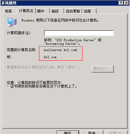 我的AD 域名為brl.com ,而我萬網(wǎng)上的域名為myxgd.com ,所以,需要做如下設(shè)置。注意:此處必須在這里面做MX 記錄,否則無法讓郵件服務(wù)器收回別人發(fā)來的郵件,也許可往外面發(fā)送郵件,但是絕對不會收到外網(wǎng)發(fā)過來的郵件?。?!