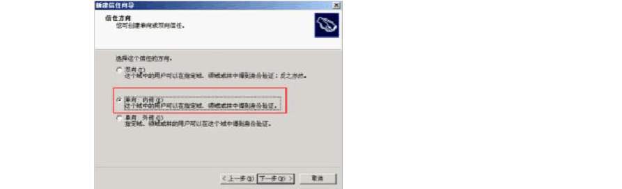(5)單擊“下一步”按鈕,同樣會打開如圖2-31所示對話框。同樣因為采用的是單獨創(chuàng)建信任方式,所以要選擇“只是這個域”單選項。