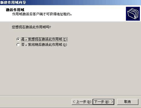 ⑦ 單擊“下一步”按鈕,顯示“激活作用域”界面,選中“是,我想現(xiàn)在激活作用域”, 單擊“下一步”按鈕,單擊“完成”按鈕,如圖8.12。