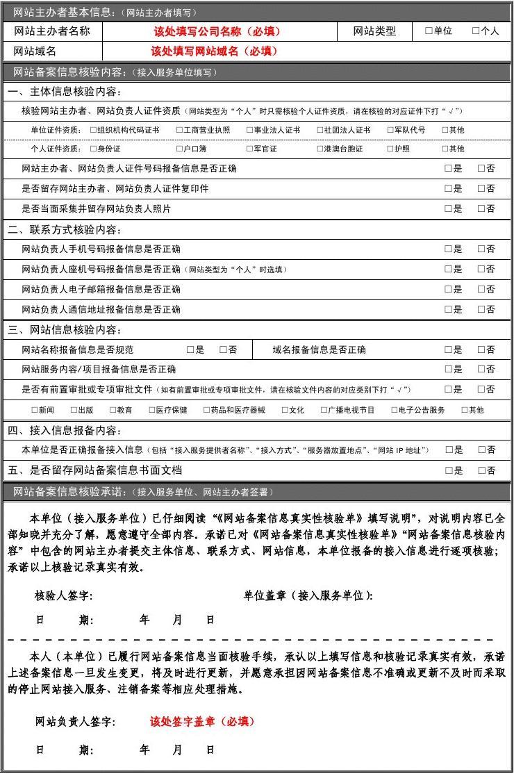 ,《網(wǎng)站備案信息真實性核驗單》填寫說明