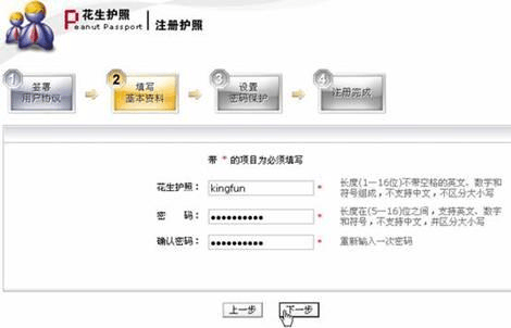 3. 按要求填寫你要注冊(cè)的用戶名,以及用戶名密碼,點(diǎn)[下一步]: