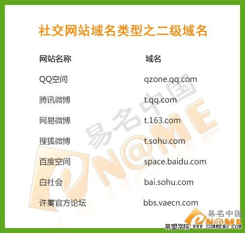 另外,騰訊的QQ 空間(qzone.qq.com)、百度空間(space.baidu.com)和搜狐旗下的白社會(bai.sohu.com)也均是二級域名的“鐘情者”。