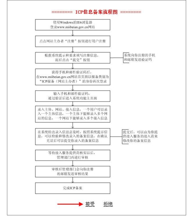 再點(diǎn)擊“接受”ICP信息備案流程圖,見下圖。
