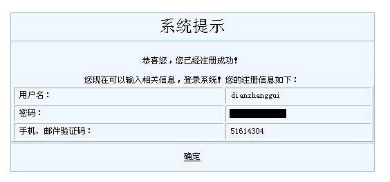 填寫好信息后,點(diǎn)擊注冊按鈕,完成注冊,下圖是提示注冊成功頁面。