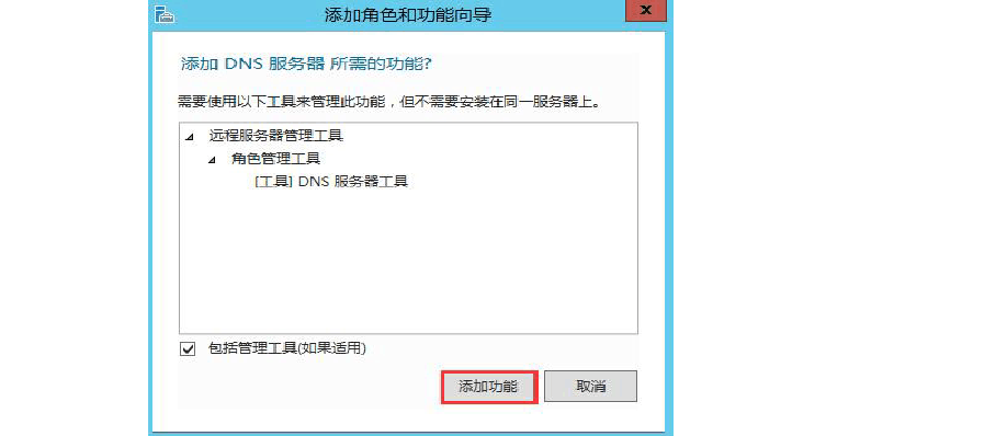 添加DNS 服務器所需的功能,點擊【添加功能】,