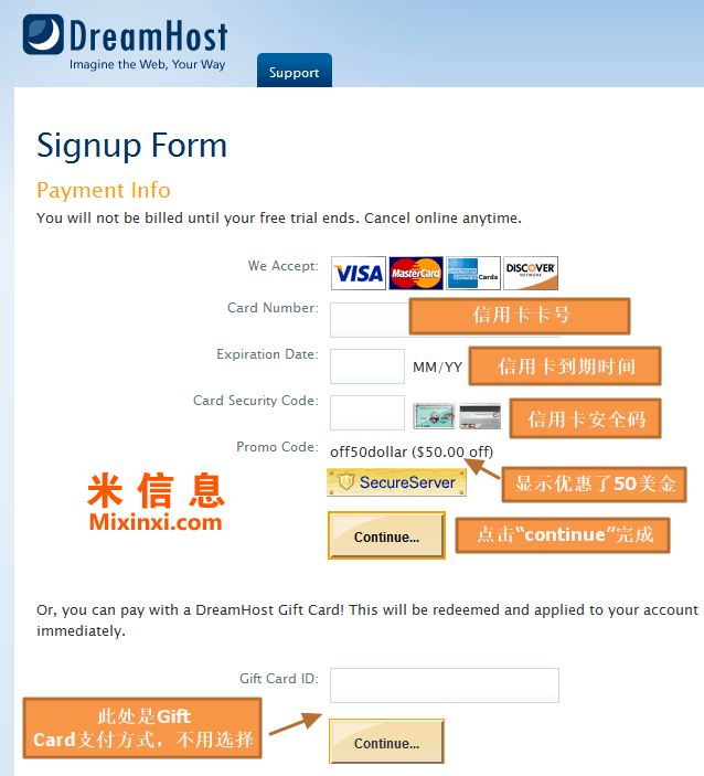 最新deramhost 購買教程和優(yōu)惠碼的使用購買Dreamhost 主機(jī),新客戶首次開通帳戶必須有一張自己的信用卡驗(yàn)證才行。沒有信用卡的可以選擇到淘寶上購買虛擬信用卡完成帳戶注冊。dreamhost