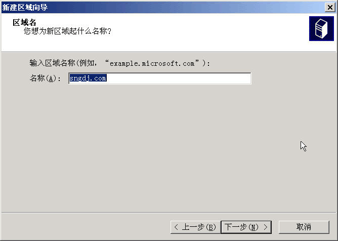 然后下一步創(chuàng)建區(qū)域文件直接再點下一步出現(xiàn)下圖,點“完成”就這樣建立了一個“sngdj.com ” 的區(qū)域。