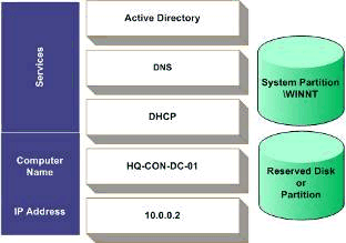 注意:本系列中的后續(xù)分步指南可能需要使用其他服務(wù)器或其他設(shè)備;特定指南中會給出有關(guān)這些附加設(shè)備的內(nèi)容。 第一個磁盤或分區(qū)中保存 Windows Server 2003 和通用結(jié)構(gòu)的其他文件,如 Windows Installer 程序包和應(yīng)用程序源文件。第二個磁盤或分區(qū)是為其他分步指南所需的 Active Directory 日志文件和過程保留的。