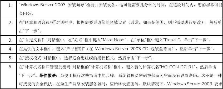 1. 第一部分:將 Windows Server 2003 安裝為域控制器