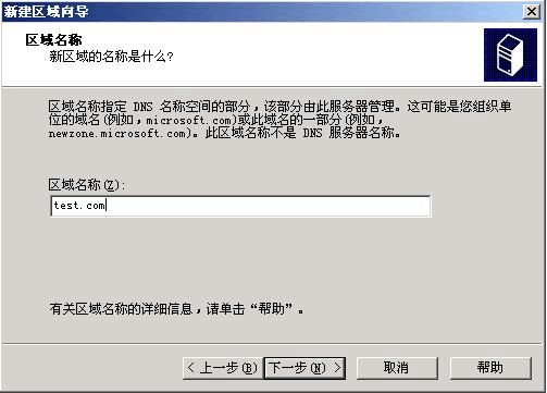 (4)在“區(qū)域名稱”文本框中輸入要創(chuàng)建的域名“test.com” ,單擊“下一步” ,進入 “區(qū)域文件”對話框,如圖 5-8 所示。