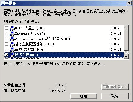 (3)將“域名系統(tǒng)”前的選項框選中,單擊“確定”按鈕,返回“windows 組件向?qū)А?對話框。