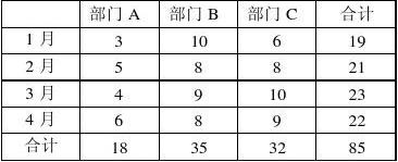 (69)(70) 某公司三個(gè)部門今年前四個(gè)月的銷售額(單位:萬元)統(tǒng)計(jì)表抄錄如下: