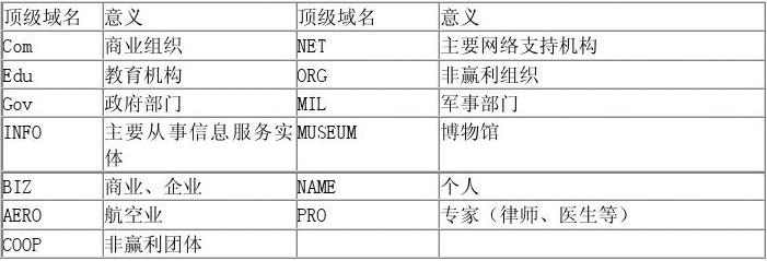 域名由若干英文單詞組成,中間由“?”分隔,從右到左依次為頂級域名段、次高域名段等,最左的一個字段為主機(jī)名。